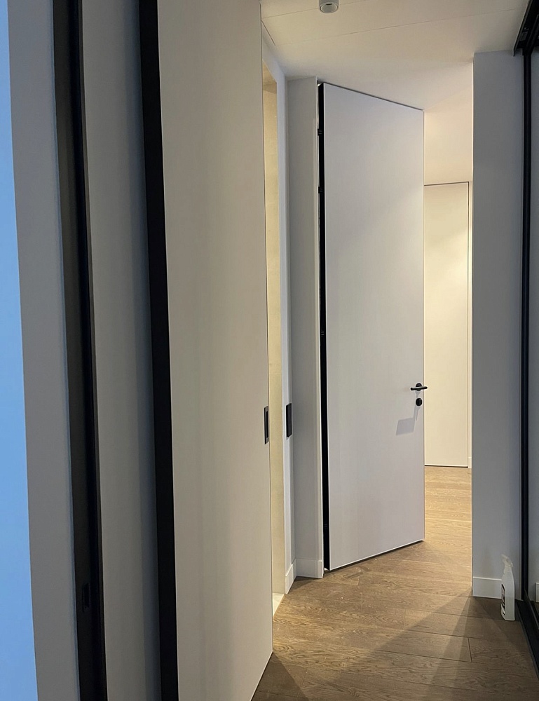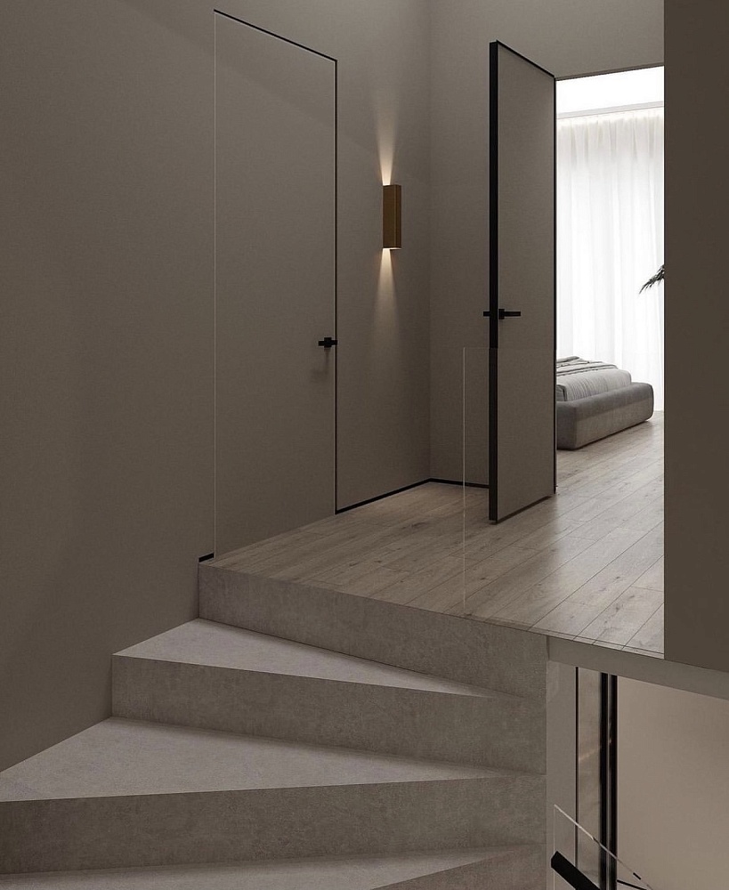 «Наши концепции в дизайне всегда опираются на минимализм и рациональность. Чистые линии и лаконичные формы всегда выстраивают строгую логику в оформлении интерьеров. В своих проектах мы почти всегда используем двери со скрытым монтажом, в сочетании с шпонированными панелями, с зеркалами или просто под покраску они помогают нам организовать ту самую притягательность минимализма.»Видео о скрытых дверях