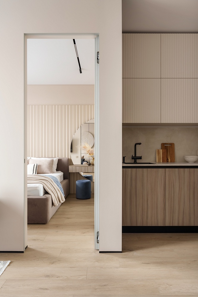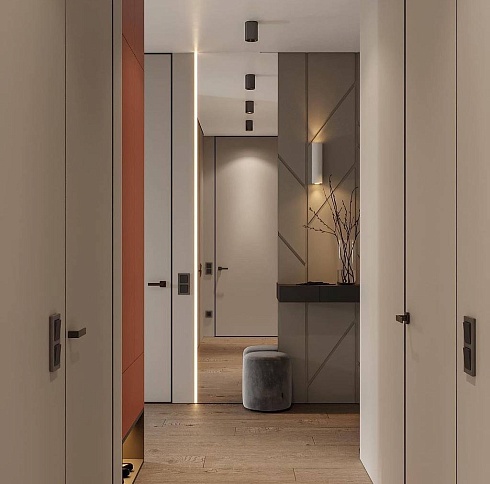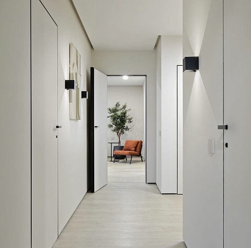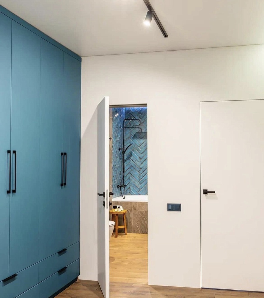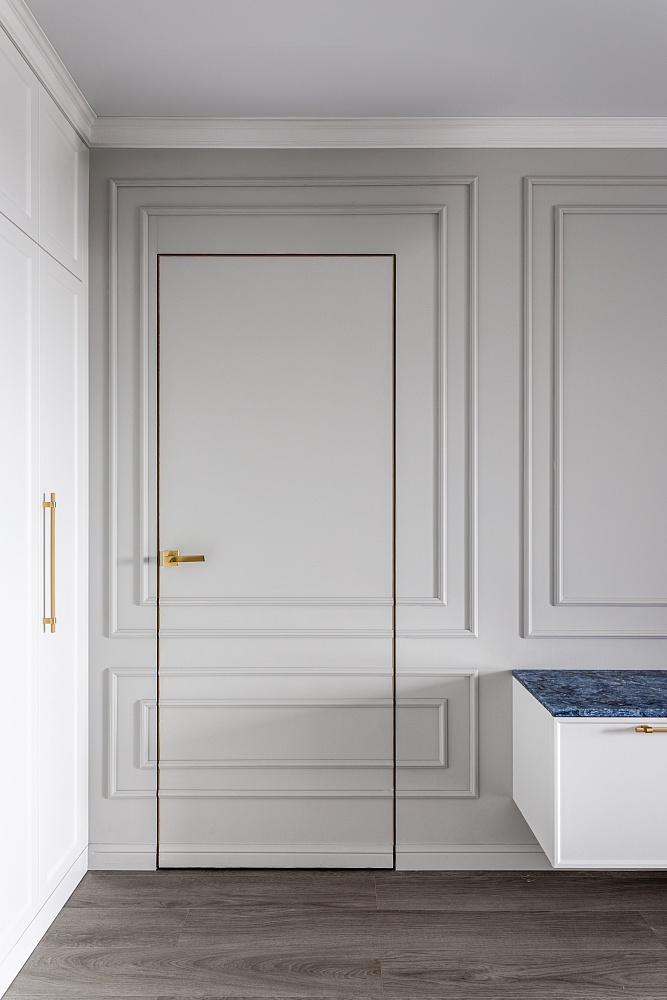 - когда в проекте много дверей, полезно часть из них сделать "невидимыми" - это делает интерьер визуально более "легким", чистым, лаконичным